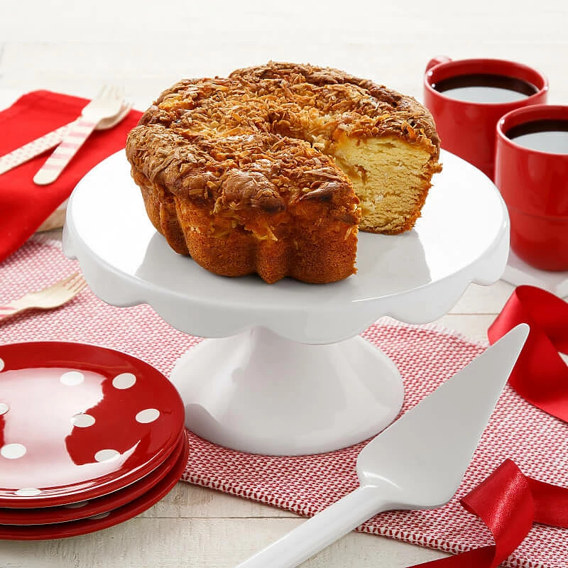 Try something a little more exotic with our Pineapple Coconut Coffee Cake. The newest addition to our line-up of cakes combine beautiful flakes of pure coconut and perfectly ripe pineapple chunks. The result is a combination of outstanding flavor and luxurious taste. Baked with the freshest ingredients.