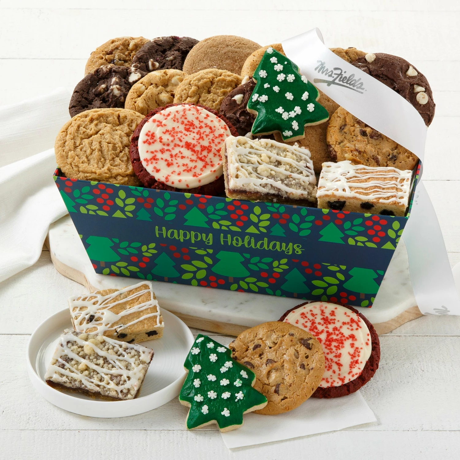 This colorful collection of Christmas cheer says Happy Holidays in a big way with this sweet assortment of treats.