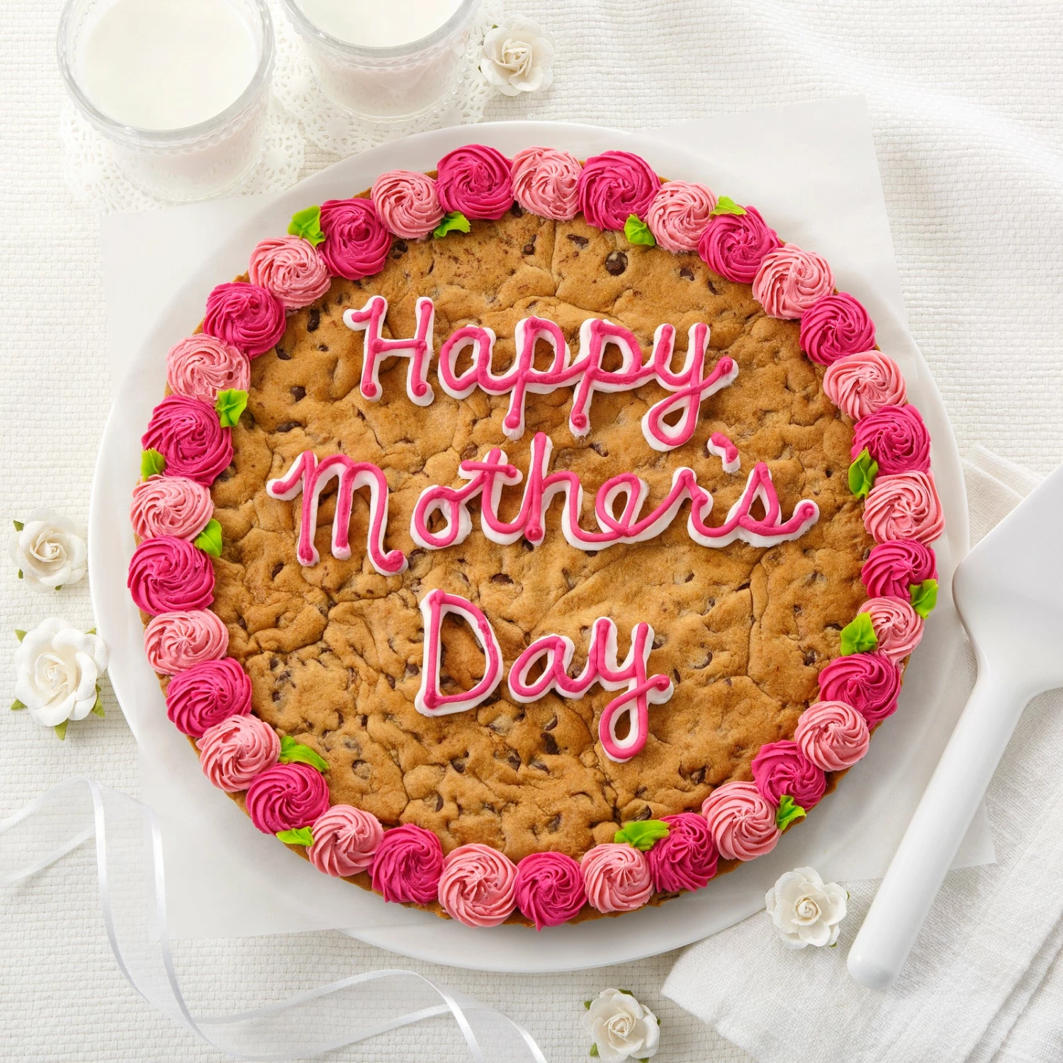 This Happy Mother’s Day Cookie Cake is a fresh way to celebrate her day! Hand-decorated especially for mom, the original cookie cake sends your message with a maximum amount of good taste.