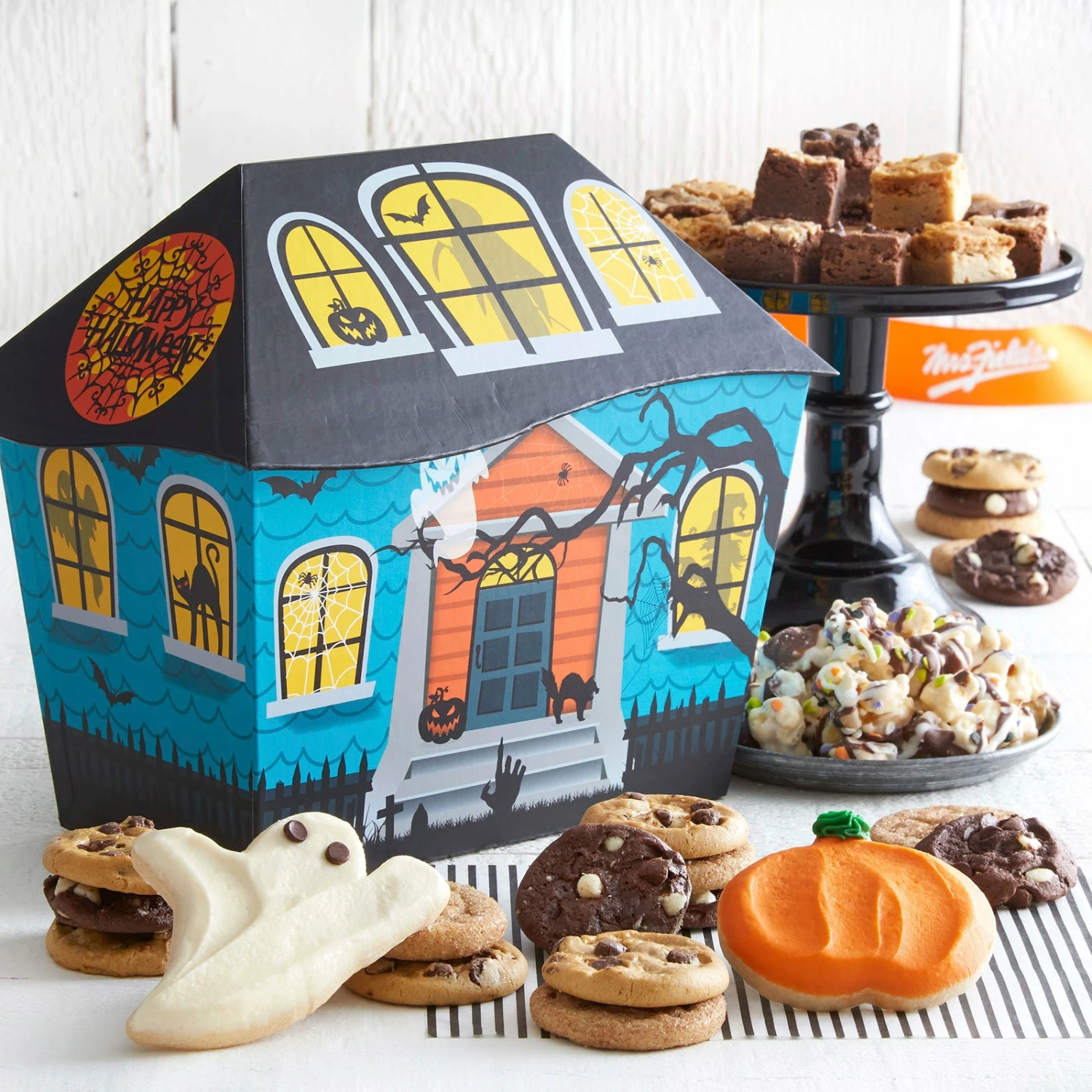 Trespassers beware of hauntingly sweet treats! Dare to open our “ghost house” and discover 18 Nibblers bite-size cookies, 18 brownie bites, 1 frosted ghost cookie, 1 frosted pumpkin cookie, and 4 oz. Halloween Popcorn.